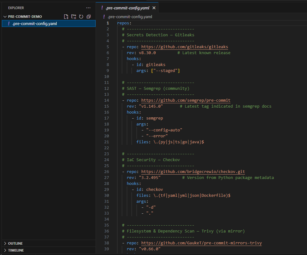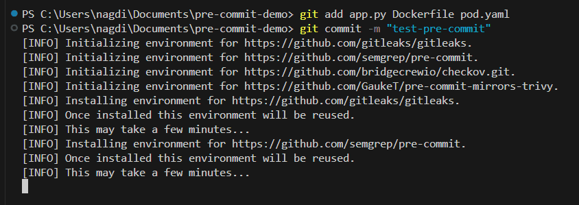 If installed correctly, Git will confirm that pre-commit hooks are active. From now on, every git commit automatically triggers security checks.
